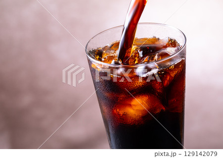 Chilled iced coffee in a transparent cup with ice cubes. Watercolor clipart