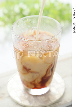 冷牛奶倒入冰咖啡中