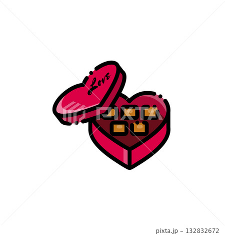 一個愛心造型的巧克力盒,寫著「Love」字樣,滿滿浪漫氛圍,適合情人節、求婚或禮物設計