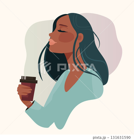 Woman enjoying coffee relaxation morning routine minimalist portrait soft colors abstract background