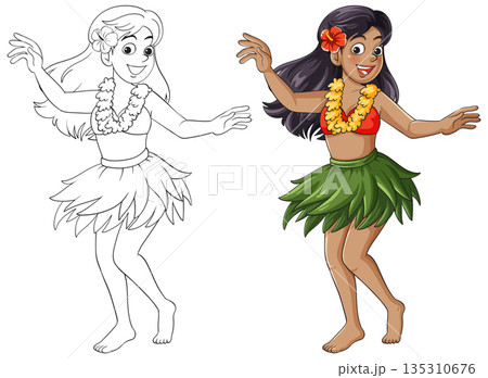 Smiling Hula Dancer in Traditional Hawaiian Costume