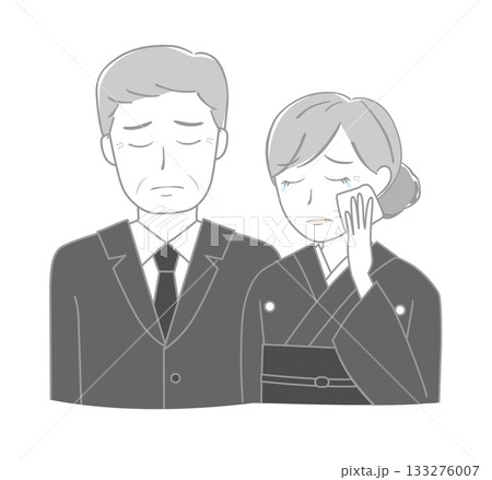 一個簡單的插圖,一個身穿喪服的男人拿著念珠祈禱