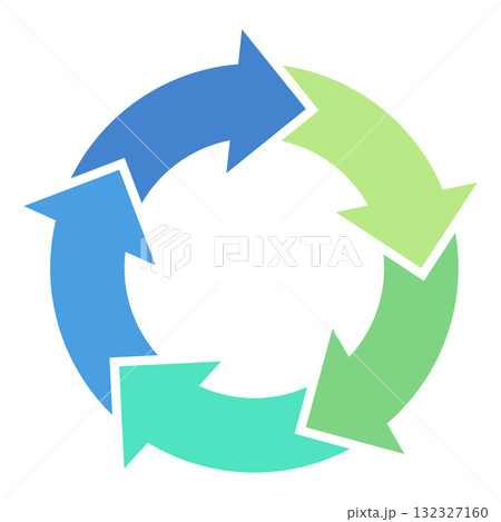 五個圓形箭頭(循環箭頭) - 冷色 - 向量插圖 - 單品
