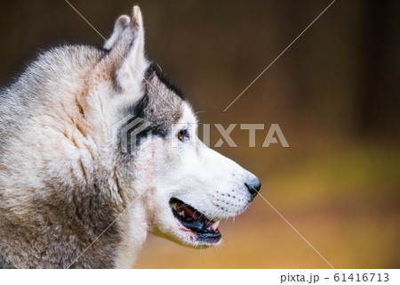 Husky dog close up muzzle profile portrait on nature