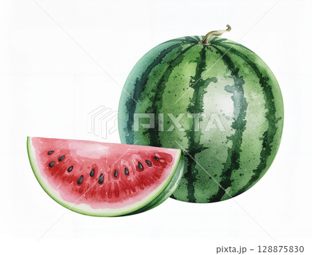 watermelon slice in watermelon field - fresh watermelon fruit on ground agriculture garden watermelon farm with leaf tree plant, harvesting watermelons in the field
