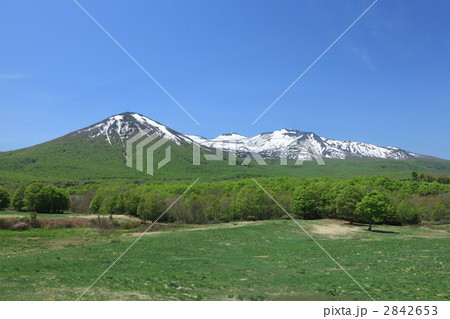[青森縣八甲田山]從茅野茶屋高原看到的八甲田山,新鮮的綠化和積雪令人印象深刻