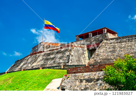 Colombian flag at the Castillo San Felipe de Barajas Fortress in Cartagena de Indias, Colombia