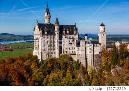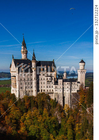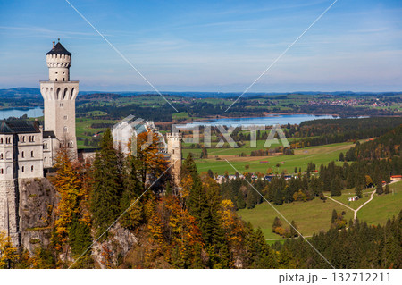 秋日晨光中的新天鵝堡壯麗景觀