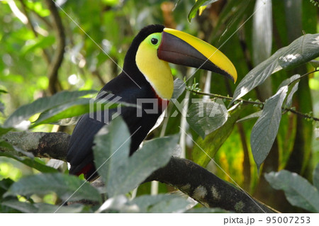 Fiery Billed Aracari portrait in Costa Rica rain Forest, Central America