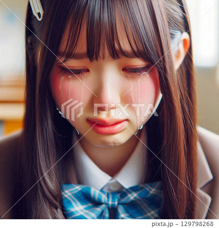 哭泣的日本年輕女子(透明背景PNG)/情緒表達,眼淚,悲傷