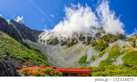 北阿爾卑斯山穗高山脈的唐澤,紅葉紛飛