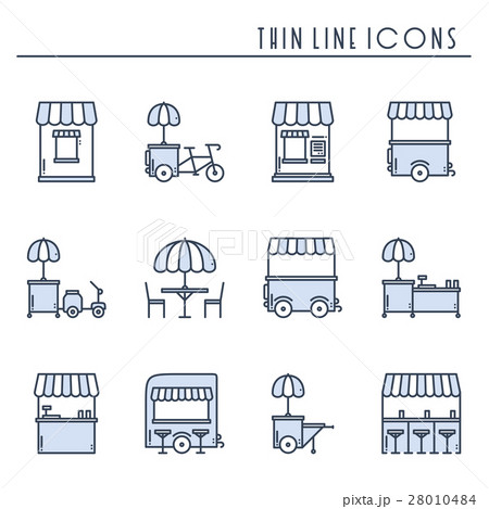 Set of flat shop building facades icons. Vector illustration for local market store house design