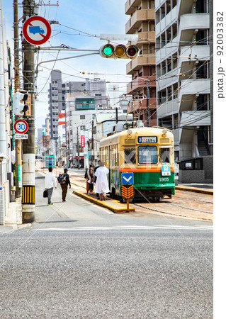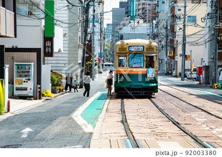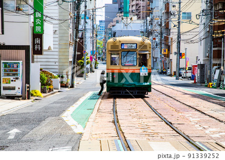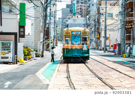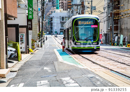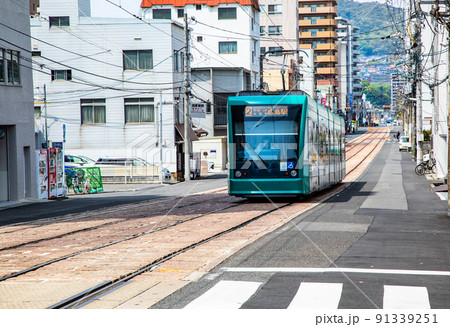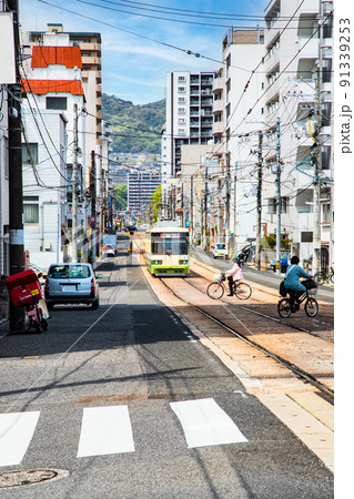 這是廣島市中心的火車道風景。這是一條帶有平坦止損的特徵線。請有一個市中心的形象。廣島。