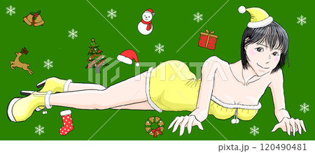 穿著性感聖誕老人服裝躺在地板上的女孩 113