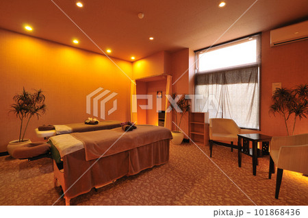 美容院的圖像。治療床和二十多歲的女性。