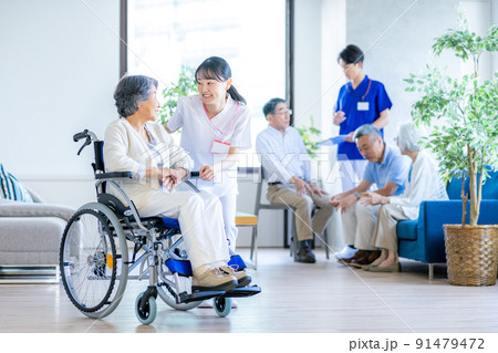 輪椅老人及療養院工作人員