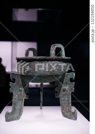 上海博物館東館青銅器展品-商朝晚期 龍紋扁足鼎