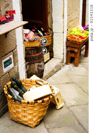 歐洲農村小鎮一家店面的籃子裡賣的蔬菜
