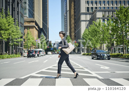 30多歲的女性上班族在商業區行走