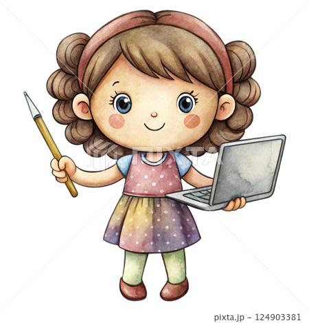 Black people Minimal Holding a Laptop Kawaii Watercolor