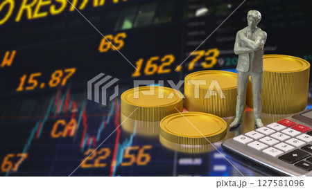 The man siting on coins for business concept 3d rendering.