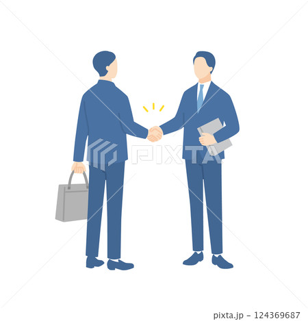 合同簽訂。一個商人微笑著握手的矢量插圖素材。