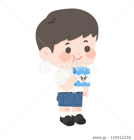 A healthy and adorable young Asian girl drinking milk from a glass on a sofa in the living room.