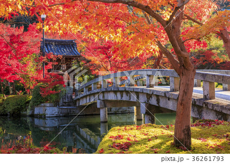 京都府京都市左京區 Benten 神社和秋葉在 Shojuraizan Muryojuin Zenrinji Hojo Pond Kinunkyo 盡頭,被稱為 Eikando