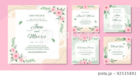 Floral Wedding Social Media Post Template Flat Cartoon Background Vector Illustration