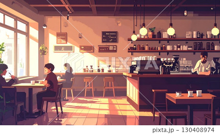 Indoor Interior Landscape in Cafe Restaurant with Bar and Chair Table for Customer