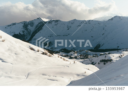 Snowy slopes in ski resort Gudauri, Georgia. Caucasus Mountains