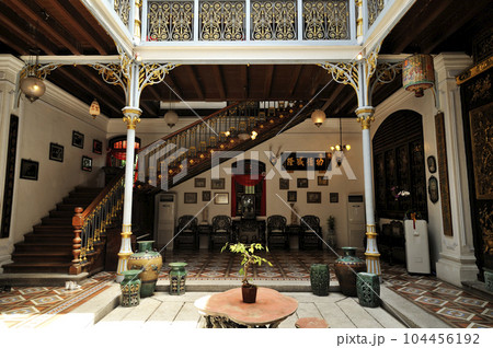 Penang, Malaysia - February 13,2019 : A traditional Nyonya inner courtyard at the Pinang Peranakan Mansion in Penang, Malaysia on February 13,2019. - Image