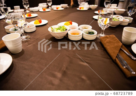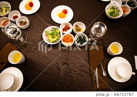 飯店早餐,韓國菜,泡菜,蔬菜,沙拉,排骨,銀魚,一杯水
