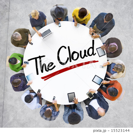 Aerial View of People and Cloud Computing Concepts