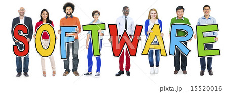 DIverse People Holding Text Software
