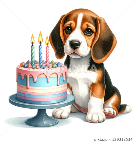 裝飾蛋糕和小獵犬插圖2/傳單和海報材料