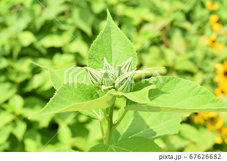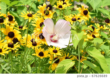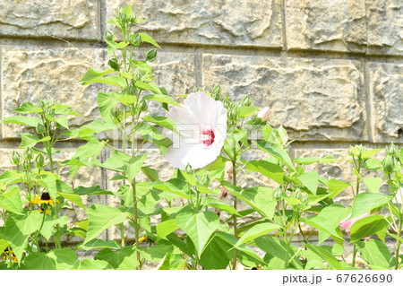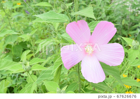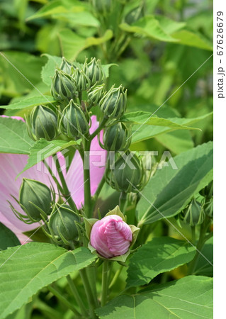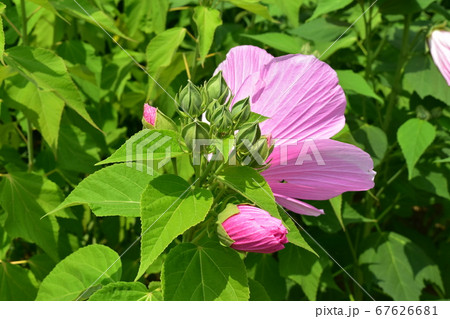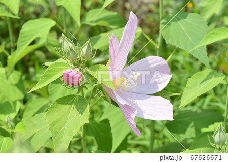 淺粉紅色的芙蓉花盛開和可愛的芽