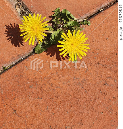 磚之間的蒲公英