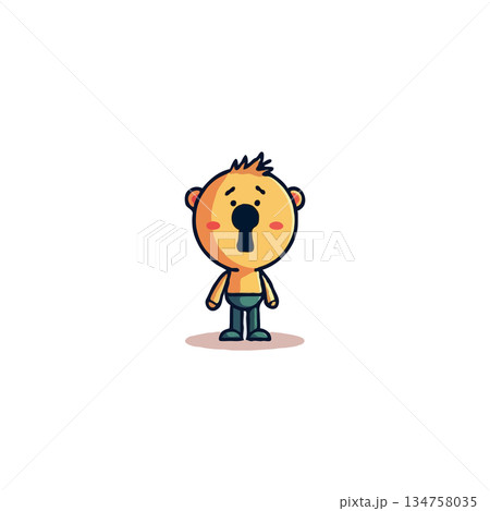 Funny cartoon furry creature with a friendly wave on a white background