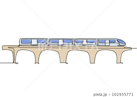 Single one line drawing of train seen from the front prepares to carry passengers quickly, safely and comfortably to their destination. Modern continuous line draw design graphic vector illustration.
