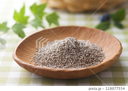 Healthy breakfast or morning with chia seeds vanilla pudding raspberry and blueberry berries on table background, vegetarian food, diet and health concept. Chia pudding with raspberry and blueberry