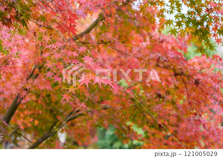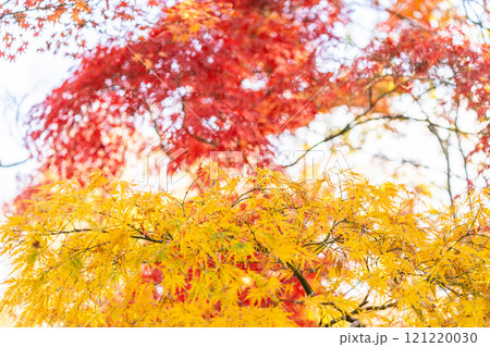 上海秋霞圃交織的紅色和黃色楓葉