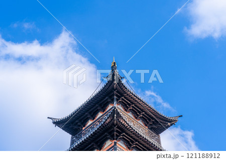 藍天白雲下的中國古塔