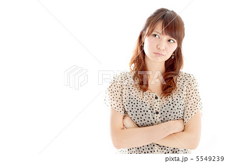 生氣與胳膊的俏麗的女孩