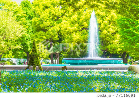 春天在日本東京千代田區日比谷公園內的Nemophila花壇