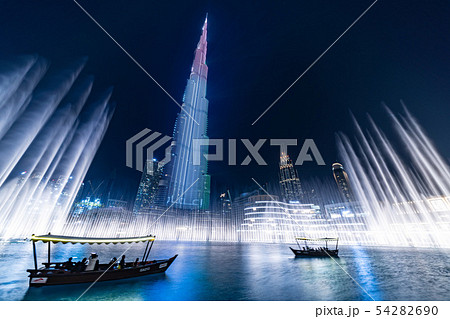 The Dubai Fountain show on Burj Khalifa Lake, in Downtown Dubai, United Arab Emirates