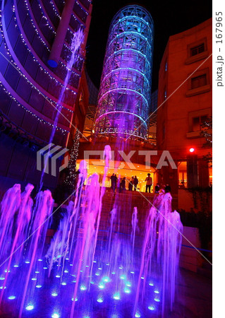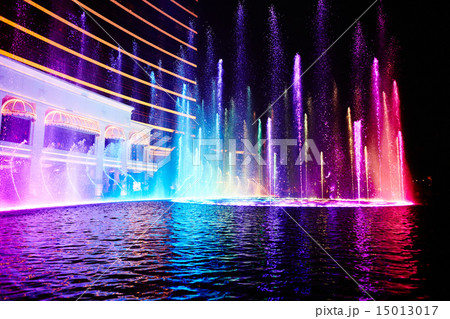 Dancing water show with light up at night in Sun Plaza, Fukuoka