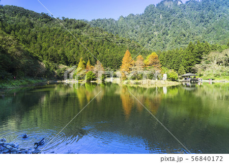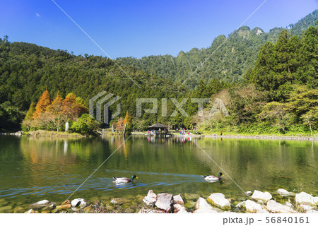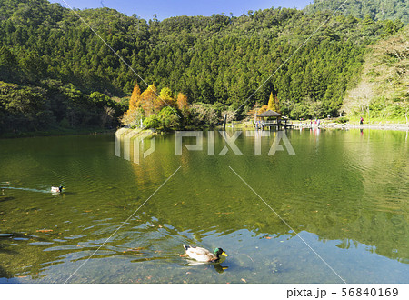 明池森林遊樂區迷人的湖畔景致倒影成雙