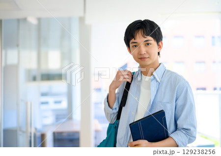 站在柱子前的男學生