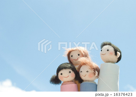 一家四口高興地談的形象